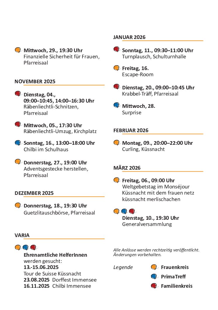 Generalversammlung Frauenkreis mit Untergruppen Familienkreis und Primatreff