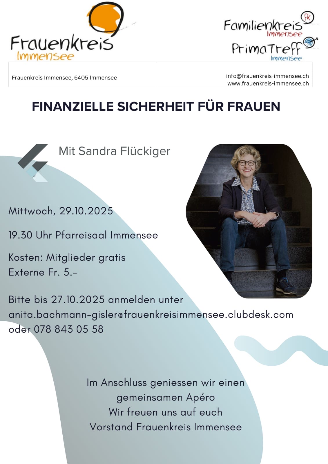Jeder Mensch trägt Verantwortung – für sich selbst und für die Gesellschaft. Gerade finanzielle Unabhängigkeit ist dabei ein wichtiger Bestandteil. Sandra Flückiger leitet den Kurs und zeigt praxisnah, wie Frauen ihre finanzielle Sicherheit stärken und Zukunft bewusst gestalten können.